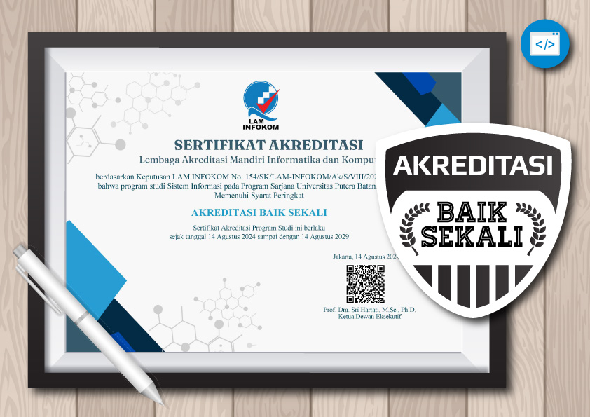 Program Studi Sistem Informasi Universitas Putera Batam telah terakreditasi Baik Sekali sesuai dengan Keputusan Badan Akreditas Nasional Perguruan Tinggi Nomor 154/SK/LAM-INFOKOM/Ak/S/VIII/2024