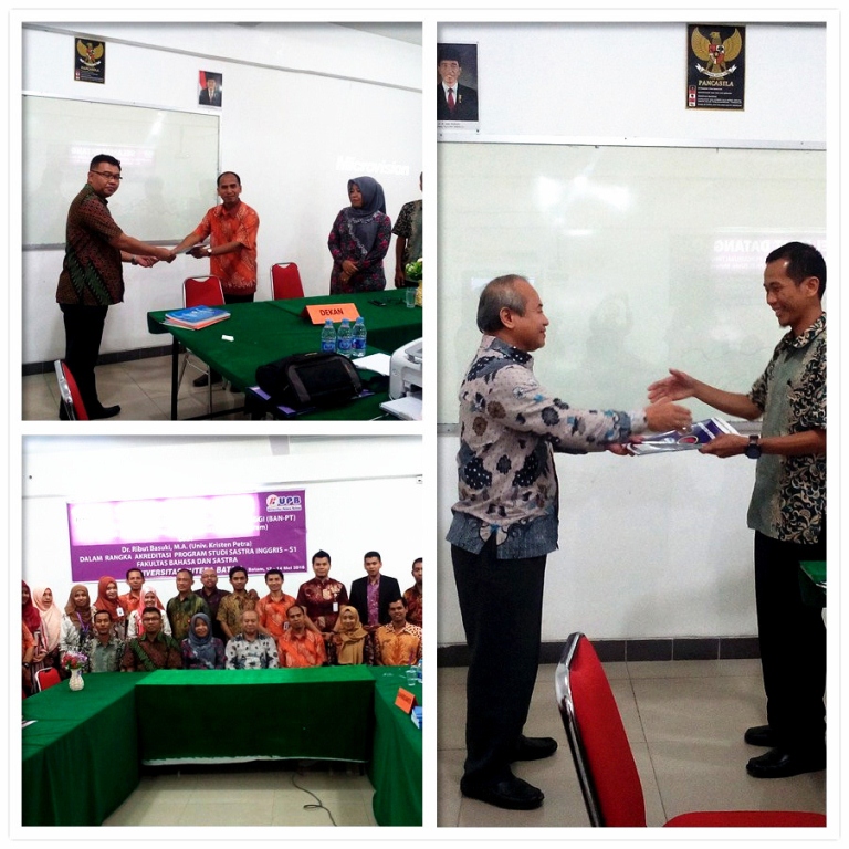 Proses reakreditasi Program Studi Sastra Inggris Fakultas Bahasa dan Sastra Universitas Putera Batam berlangsung pada tanggal 12 Mei s/d 14 Mei 2016. Ketua Program Studi Sastra Inggris Bapak Emil Eka Putra, S.S., M.Hum. menyampaikan bahwa proses ini tidak terlepas dari bantuan semua civitas akademika Universitas Putera Batam, khususnya dosen Program Studi Sastra Inggris yang telah meluangkan waktu untuk mempersiapkan bukti fisik borang akreditasi. Bapak Emil yang juga selaku ketua tim inti borang juga menyampaikan ucapan terima kasih kepada semua tim inti borang yang telah berusaha keras menyiapkan borang akreditasi Sastra Inggris. Proses yang membutuhkan waktu selama lebih kurang 1 (satu) tahun ini diharapkan mampu memberikan hasil yang lebih baik bagi Program studi Sastra Inggris khususnya dan Universitas Putera Batam pada umumnya. Kamis, 12 Mei 2016 penilaian akreditasi dilakukan oleh Prof. Nurachman Hanafi, M.A.,Ph.D. guru besar dari Universitas Mataram bertindak sebagai asesor I dan Dr. Ribut Basuki, M.A. dari Universitas Kristen Petra bertindak sebagai asesor II. Dari assesment assesor I dan Assesor II memberikan masukan yang sangat berguna bagi peningkatan mutu prodi Sastra Inggris ke depannya. Semoga hasil dari proses akreditasi borang Program studi Sastra Inggris memuaskan segala pihak baik dari civitas akademisi maupun praktisi atau stakeholder dan pihak lain yang terlibat. (AFN) |