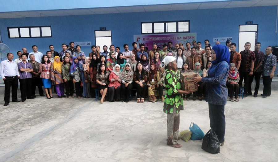 Universitas Putera Batam kembali mengadakan kegiatan Bakti Sosial (Baksos) pada hari Kamis, 4 September 2014, di Gedung W, Kampus Tembesi Universitas Putera Batam. Kegiatan bakti sosial ini dilakukan dengan cara memberikan sumbangan bahan pokok kepada masyarakat yang ada di sekitar Universitas Putera Batam. Bahan pokok yang diberikan adalah 5 kg beras, 2 liter minyak goreng, 1 kardus supermi dan 4 kaleng sarden ukuran besar. Dua hari sebelum kegiatan pada hari “H”, panitia membagikan 150 kupon kepada masyarakat dengan meminta ijin terlebih dahulu kepada ketua RT dan RW setempat. Pembagian kupon dilakukan secara langsung dengan mengunjungi rumah penduduk satu-persatu dari RT 1, 2, 4, 6, sampai RT 7 di Ruli Tembesi Raya, oleh panitia, dibantu oleh 2 anggota BEM. Pembagian kupon dilakukan dengan cara mempertimbangkan kondisi ekonomi (melihat kondisi rumah, latar belakang penghuni seperti janda atau jompo dan lain-lain). Satu rumah hanya mendapatkan satu kupon. Tidak semua rumah mendapatkan kupon karena panitia secara selektif melakukan pemilihan berdasarkan pertimbangan tersebut. Kegiatan dimulai pada pukul 08.30 WIB. Kegiatan tersebut mendapatkan banyak dukungan antara lain dukungan dana dari Universitas Putera Batam, antusiasme masyarakat serta ijin dari ketua RT dan ketua RW. Seluruh dosen Universitas Putera Batam turut mengambil bagian dalam kegiatan ini. Beberapa dosen dengan sukarela membantu pembungkusan bahan pokok, menjaga meja penukaran kupon, membantu masyarakat untuk membawa bahan pokok tersebut dan lain-lain. Semua kupon telah ditukarkan dengan bahan pokok. Beberapa ibu janda dan manula yang tidak dapat hadir karena masalah kesehatan dan transportasi, dibantu oleh tetangga dan ketua RT untuk mengambil bahan pokok mereka tersebut. Kegiatan berakhir pada pukul 11.00 WIB. Seluruh masyarakat yang mendapatkan bantuan mengucapkan terima kasih yang sebesar-besarnya kepada Universitas Putera Batam dan berharap kegiatan ini tetap berlanjut pada masa mendatang. Selain itu masyarakat juga mendoakan agar Universitas Putera Batam tetap jaya dan berhasil mencapai visi, misi, tujuan dan sasarannya. |