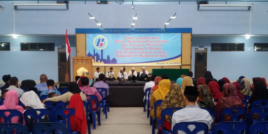 Di bulan Ramadhan ini, Universitas Putera Batam mengadakan acara buka puasa bersama dengan masyarakat tidak mampu di lingkungan kampus Putera Batam. Acara ini diadakan pada hari Sabtu, 4 Juli 2015, dan dihadiri oleh Gubernur Provinsi Kepulauan Riau, H. Muhammad Sani, yang sekaligus juga meresmikan masjid baru di kampus Universitas Putera Batam yang bernama masjid Al-madani. Pada kesempatan tersebut, ibu Rektor Universitas Putera Batam, Nur Elfi Husda, S.Kom., M.SI. menyatakan bahwa universitas selalu menjaga mutu lulusannya baik secara lahiriah maupun bathiniah, sehingga selalu menghasilkan lulusan yang bermutu dan juga luhur budinya. Acara kemudian ditutup dengan berbuka puasa bersama yang dihadiri oleh berbagai unsur dari masyarakat tidak mampu di lingkungan Universitas Putera Batam dan seluruh sivitas akademika Universitas Putera Batam.(HEN) |