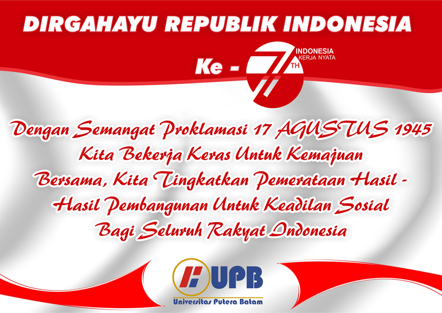 Dengan semangat proklamasi 17 Agustus 1945. Kita bekerja keras untuk kemajuan bersama, kita tingkatkan pemerataan hasil-hasil pembangunan untuk keadilan sosial bagi seluruh rakyat Indonesia. (AMN)