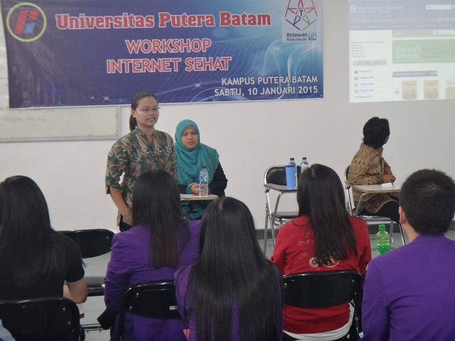 Pada tanggal 10 Januari 2015 di kampus Putera Batam, telah dilaksanakan Workshop Internet Sehat yang diselenggarakan bekerjasama dengan Relawan TIK provinsi Kepulauan Riau, yang diketuai oleh Hendi Sama, S.Kom, MM. Dalam seminar tersebut pembicara dari dari kalangan pemerhati sosial teknologi memaparkan informasi mengenai bagaimana internet sudah menjadi bagian yang sangat penting dalam kemajuan budaya suatu bangsa. "Keterbukaan ber-Internet ria juga ada efek negatifnya", demikian dikatakan oleh ibu Desi Sariani sebagai salah satu narasumber pada acara tersebut."Apalagi para remaja dan mahasiswa yang juga merupakan sasaran empuk para Social Engineering Hacker ", pungkas ibu Mauli Siagian juga. Acara ditutup dengan diskusi dan Tanya jawab dengan para peserta yang sangat antusias untuk mengetahui lebih lanjut mengenai perkembangan teknologi filtering internet untuk kebaikan keluarga. |