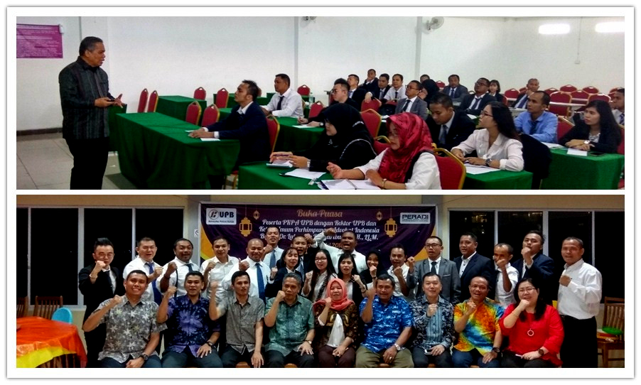 Pada tanggal 28 April 2018 dilaksanakan kelas perdana Pendidikan Khusus Profesi Advokat Universitas Putera Batam (PKPA UPB) bekerjasama dengan Perhimpunan Advokat Indonesia (PERADI) resmi dibuka. Dimana acara tersebut dibuka langsung oleh Rektor Universitas Putera Batam Ibu Dr. Nur Elfi Husda, S.Kom., M.SI. yang disaksikan langsung oleh Bapak Irianto Subiakto, S.H., M.H. dan M. Syafei, S.H., M.H. serta dihadiri oleh peserta PKPA maupun pejabat struktural dilingkungan Universitas Putera Batam. Acara tersebut dimulai pukul 10.00 WIB. Sebelum dimulainya Kelas PKPA tersebut dilakukan penandatangan kerjasama antara Prodi Ilmu Hukum Universitas Putera Batam dengan PERADI terkait dengan pelaksanaan PKPA maupun Ujian Advokat (UPA). Penandatangan tersebut dilakukan oleh Bapak Padrisan Jamba, S.H., M.H. Selaku Ketua Program Studi Ilmu Hukum dengan Pak Bapak Irianto, S.H, M.H. selaku pihak dari PERADI yang membidangi PKPA dan UPA. PKPA hari pertama tersebut dilaksanakan sebanyak 3 sesi dimana setiap sesinya terdiri dari 2 jam. Para peserta sangat antusias untuk mengikuti pelatihan ini dimana ini merupakan salah satu syarat bagi seseorang yang lulus Sarjana Hukum (S.H) untuk menjadi seorang advokat yang mandiri, professional harus melalui Pendidikan PKPA ini terlebih dahulu sebelum mengikuti Ujian Advokat (UPA), magang serta diangkat sumpahnya menjadi seorang advokat sebelum terjun langsung praktek di pengadilan. Dalam PKPA ini banyak sekali pemateri dari praktisi bidang hukum yang dihadir oleh panitia, hal ini diungkapkan oleh Bapak Padrisan Jamba, S.H., M.H. selaku Ketua Pelaksana dari PKPA ini. Beliau mengatakan praktisi yang dihadirkan sebagai pemateri PKPA 90 persen adalah praktisi dimana meliputi Hakim, Jaksa, Pengacara, Notaris, Kurator, Polisi, Bawaslu, KPPU, dll. PKPA ini berlangsung lebih dari sebulan dimana dilaksanakan setiap hari sabtu mulai pukul 08.00 s/d 17.00 dan minggu pukul 10.00 s/d 17.00 dimana peserta sangat antusias mengikuti materi yang disampaikan oleh pemeteri yang sangat berpengalaman dalam dunia praktek penegakan hukum sebagai bekal peserta untuk mengikuti UPA nantinya. Dalam setiap sesi yang disampaikan oleh pemateri tidak jarang sering muncul pertanyaan dari peserta dikarenakan materi yang disampaikan kebanyakan berasal dari pengalaman pemateri sendiri ketika menjadi seorang penegak hukum. Pada hari berikutnya tanggal 26 Mei 2018 setelah penyampaian materi oleh pemateri yakni Bapak Syafei, S.H., M.H. dan Bapak Dr. Burhan, S.H., M.H. (PERADI) dilakukan Puka Puasa Bersama yang dihadiri oleh peserta, pemateri, panitia, Rektor dan Wakil Rektor Universitas Putera Batam serta Ketua Umum Dewan Pimpinan Nasional Perhimpuan Advokat Indonesia (DPN PERADI) Bapak Dr. Luhut MP. Pangaribuan, S.H., LL.M yang membuat meriahnya acara buka puasa tersebut dimana dalam buka puasa tersebut dilakukan peniupan lilin dan pemotongan kue ulang tahun serta ucapan selamat ulang tahun yang ke-62 tahun dari seluruh peserta yang hadir kepada Ketua Umum DPN Peradi tersebut. Hari berikutnya tanggal 27 Mei 2018 Ketua Umum DPN Peradi Bapak Dr. Luhut MP. Pangaribuan, S.H., LL.M. menyampaikan materi yang terakhir sebelum dilakukan penutupan PKPA Angkatan I ini dimana dalam penutupan tersebut dihadiri oleh peserta PKPA, Ketua Umum Peradi dan Rektor Universitas Putera Batam memberikan sambutan sekaligus menututp PKPA angkatan I dan dilanjutkan dengan foto Bersama dengan peserta PKPA. (PDR) |