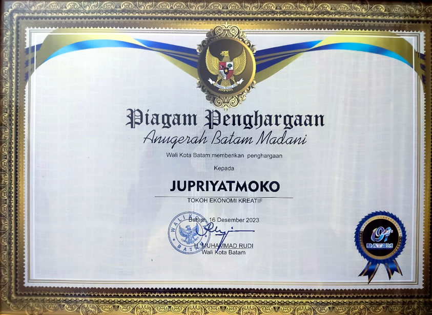 Batam Madani dari Pemerintah Kota (Pemko) Batam sebagai tokoh ekonomi kreatif.
