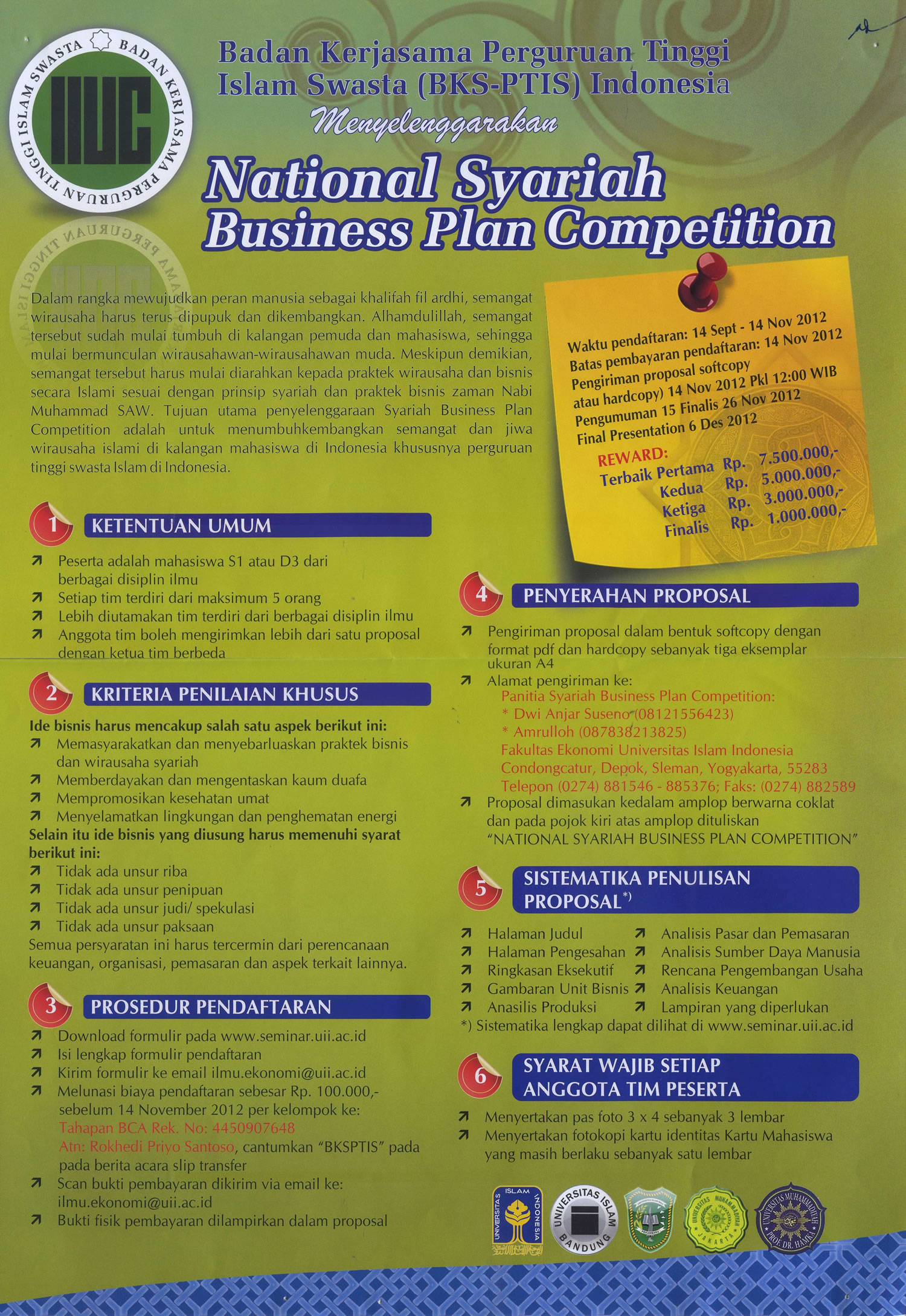 Pengiriman Proposal Softcopy atau Hardcopy : 14 November 2012, Pukul 12:00WIB