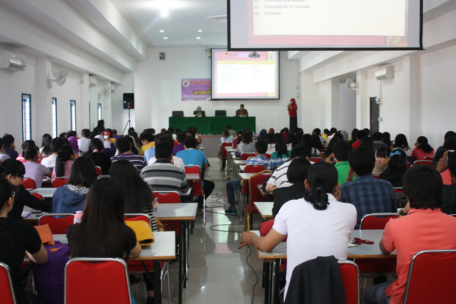 Penelitian merupakan suatu sarana yang dapat digunakan oleh manusia untuk memperkuat, membina serta mengembangkan ilmu pengetahuan. Ilmu pengetahuan yang merupakan pengetahuan yang tersusun secara sistematis dengan menggunakan kekuatan pemikiran, pengetahuan mana senantiasa dapat diperiksa dan ditelaah secara kritis, ilmu pengetahuan ini akan berkembang terus atas dasar penelitian-penelitian yang dilakukan oleh pengasuh-pengasuhnya . Berkaitan dengan hal itu Program Studi ilmu Hukum Universitas Putera Batam menyelenggarakan Seminar yang bertajuk “ Pelatihan Metode Penelitian Hukum” ini dilaksanakan pada tanggal 12 Oktober 2013 yang dimulai pada pukul 09.00 WIB sampai selesai bertempat di Aula Kampus Universitas Putera Batam Tembesi,Dihadiri oleh pembicara dari Dosen Universitas Putera Batam, yaitu Nur Afni, S.H., M.Pd tentang Metode Kuantitatif dan Desi Sariani, S.Pd., M.Si tentang Statistik Inferensial, Seminar yang diikuti lebih kurang 187 Mahasiswa ini bertujuan untuk supaya mahasiswa mengetahui tentang metode kuantitatif dan statistik yang akan digunakan di dalam penyusunan tugas akhir dan skripsi. |