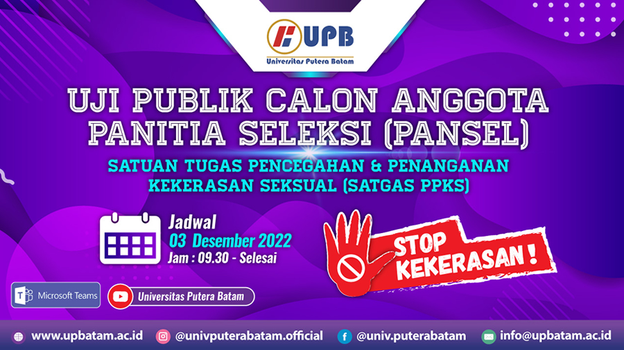 | Pengumuman Uji Publik Calon Anggota Panitia Seleksi Satgas PPKS di Lingkungan Universitas Putera Batam Tahun 2022