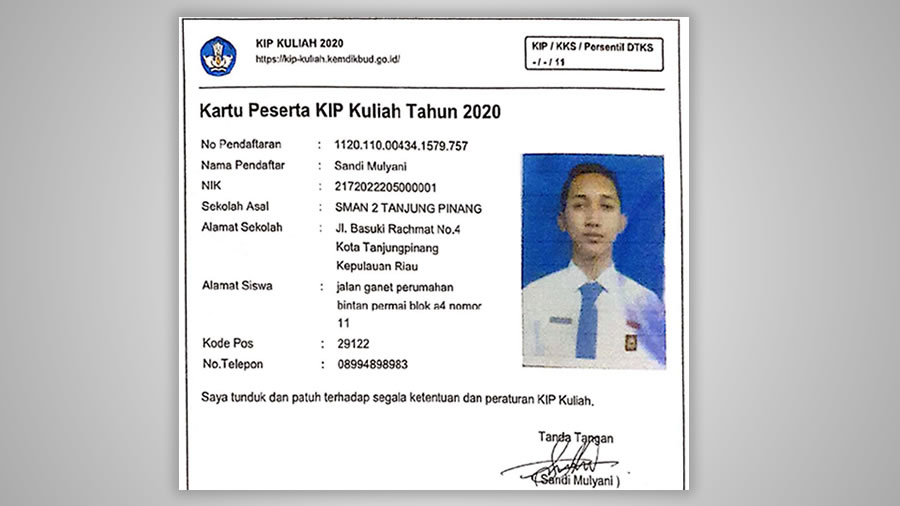 Putera Batam sudah memiliki pemenang penerima beasiswa KIP Kuliah yaitu Sandi