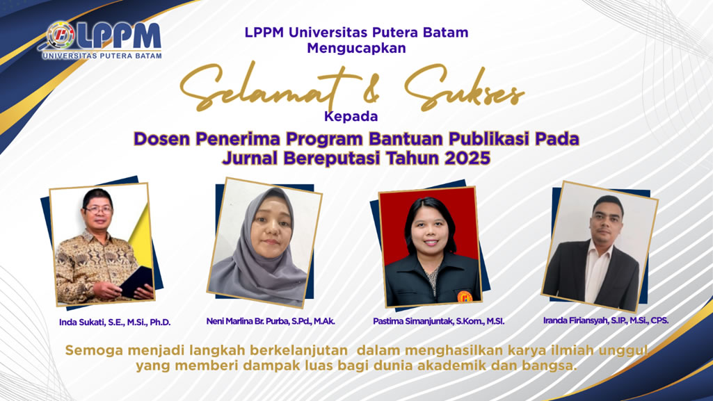 Memperhatikan hal tersebut, Direktorat Jenderal Riset dan Pengembangan, Kemdiktisaintek menyelenggarakan Program Bantuan Publikasi pada Jurnal Bereputasi sebagai instrumen strategis untuk mendorong dosen memublikasikan hasil penelitian secara optimal. Program ini mendukung pencapaian target Rencana Pembangunan Jangka Menengah Nasional (RPJMN) serta Rencana Strategis Kemdiktisaintek terkait peningkatan kualitas luaran riset yang berdampak melalui publikasi pada jurnal bereputasi, sekaligus mendorong peningkatan sitasi karya ilmiah dan h-index dosen di Indonesia. Pimpinan dan seluruh civitas akademika Universitas Putera Batam berharap capaian ini dapat menjadi motivasi bagi dosen lainnya untuk terus meningkatkan produktivitas riset, memperkuat budaya publikasi ilmiah, serta berkontribusi nyata bagi kemajuan ilmu pengetahuan, institusi, dan bangsa. (RJ) |