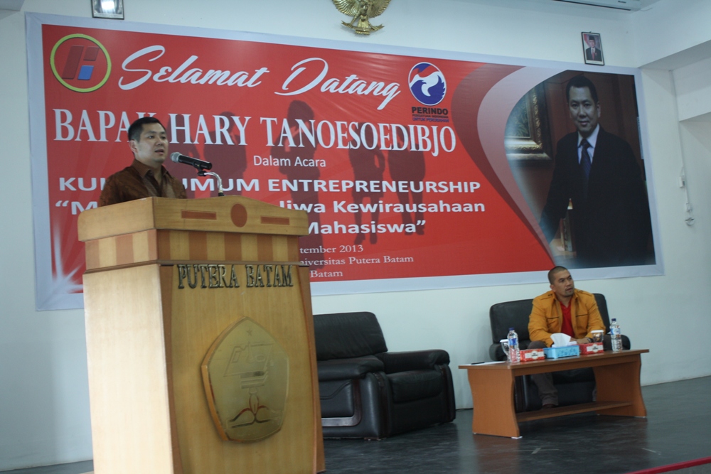 Universitas Putera Batam kembali menyelenggarakan seminar dengan judul "Seminar Entrepreneurship Untuk Calon Pengusaha Muda", Rabu, 11 September 2013 dengan pembicara Bapak Hary Tanoesoedibjo yang merupakan CEO MNC Group bertempat di Aula UPB yang akan berlangsung selama dua setengah jam. Dalam seminar tersebut, Hary Tanoesoedibjo menjelaskan bahwa siapa saja bisa menjadi Entrepreneur, tidak harus menjadi tua terlebih dahulu baru bisa sukses. Indonesia memiliki potensi yang begitu luas, jika hal ini bisa dimanfaatkan oleh orang-orang muda yang produktif dan aktif maka Indonesia bisa maju. Beliau juga memberikan berbagai