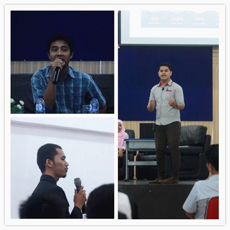 UPB – Sabtu (23/1/2016) Mahasiswa Ilmu Komunikasi yang tergabung dalam Himpunan Mahasiswa Prodi Ilmu Komunikasi (HMP Ilmu Komunikasi) menggelar seminar sehari jurnalistik dengan tema “Say Hallo to Journalism” dan sub tema “Journal(is)me, for Creative Generation”, di Aula Gedung W Kampus Tembesi Universitas Putera Batam. Seminar yang mendatangkan Saibansah Dardani dari Persatuan Wartawan Indonesia (PWI), Muhammad Zuhri, Ketua Aliansi Jurnalis Independen (AJI) Batam dan Sri Murni, S.IP., M.A Akademisi UPB, mereka diundang sebagai narasumber dari kalangan praktisi dan akademisi. Seminar ini dipandu dari salah satu mahasiswa yaitu Muhammad Patli. Sri Murni menjelaskan konsep dari jurnalistik itu adalah seperti melakukan kegiatan catatan harian, menuliskan apa yang terjadi disekitar kita berdasarkan fakta. Kemajuan teknologi, membuat media mengalami konvergensi media. Kehadiran Smartphone, membuat media cetak seperti surat kabar, majalah, tabloid dan bulletin serta media Elektronik seperti radio dan televisi bisa dilakukan dalam satu teknologi. “Kehadiran teknologi, membuat media cetak mulai berguguran, beralih ke media digital”, ungkap Sri Murni, yang kerap dipanggil Menik itu. Media digital atau yang sering didengar dengan sebutan media online ini memiliki beberapa peluang yaitu mudah buka portal berita, biaya murah, bisa diakses kapan dan dimana saja dan mudah direvisi dan lebih interaktif. Namun ada beberapa tantangan dalam media online yaitu berkaitan dengan kredibilitas media online belum sekuat media cetak dan belum teruji ketangguhannya dalam sejarah. Hal ini senada diungkapkan oleh Zuhri, mengungkapkan bahwa era sekarang internet merupakan kebutuhan primer, berdasarkan data Digital in Indonesia, jumlah populasi masyarakat 225.5 juta jiwa terjadi peningkatan dalam pengguna internet sebesar 72.7 juta jiwa. Pertumbuhan Pengguna Internet selama 9 tahun data dari 2005-2014 sebesar 34,99 persen , bahkan kebutuhan akan belanja menjadi peringkat kedua setelah internet. Menjawab pemaparan Zuhri, Saiban menambahkan bahwa secara perlahan industri cetak akan pada berguguran . ” Industri cetak akan habis, jika tidak adalagi pembaca dan pemasangan iklan. Maka tahun mulai 2020 keatas, media cetak akan hilang sendiri,” ujar Saiban. Saiban juga bertanya, apa yang lebih penting pacar dari pada handphone. “Serentak peserta menjawab, lebih penting handphone dari pada pacar,” jawab peserta Mahasiswa. Menjadi tantangan bagi para jurnalis sekarang ini, karna Media On Line sedang membuat sejarahnya. Dengan adanya kemajuan teknologi, dan prosedur yang mudah, membuka peluang bagi siapa saja untuk menjadi jurnalis. Sehingga harus ada aturan yang mengatur keberadaan media online ini, tentunya tidak lepas dari kode etik jurnalis. Ada tiga poin yang menjadi titik pembahasan dalam seminar sehari ini, yaitu pertaruhan prioritas utama loyalitas seorang jurnalis antara masyarakat dan perusahaan (media). Perkembangan jurnalistik dan media massa dari pra dan pasca reformasi. Pandangan terhadap kedua materi di point 1 dan 2. Dan Prediksi terhadap perkembangan media massa 10 tahun yang akan datang. (ANG) |