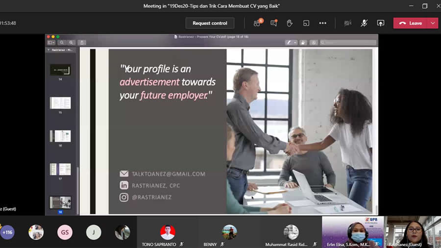 dan Trik Cara Membuat CV yang Baik secara online melalui Aplikasi Microsoft Teams pada tanggal 19 Desember 2020
