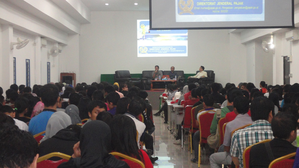 Sivitas Akademika Universitas Putera Batam pada hari Sabtu, tanggal 19 Januari 2013 menyelenggarakan Studium Generale dengan tema “Tax Goes to Campus”. Studium Generale tersebut dihadiri oleh para dosen dan mahasiswa Universitas Putera Batam dengan narasumber dari Direktorat Jenderal Pajak, . Menurut bapak Gading Dwi Sakti, pajak merupakan iuran kepada negara, berdasarkan undang-undang, dapat dipaksakan, tidak memberikan imbalan secara langsung, dan dapat dipergunakan untuk keperluan Negara. Pajak sebagai sumber dana yang diperuntukkan bagi pembiayaan pengeluaran - pengeluaran pemerintah. Dikatakan juga bahwa “Pajak merupakan alat untuk mengatur atau melaksanakan kebijakan dibidang sosial dan ekonomi”. Pajak digunakan untuk membiayai kepentingan umum, pembangunan di segala bidang, pemerataan kesejahteraan, mewujudkan masyarakat indonesia yang adil, makmur dan sejahtera. Sebagai penjelmaan atau wujud sistem gotong royong dalam kegiatan pemerintahan dan pembangunan demi kesejahteraan dan kemakmuran seluruh warga negara indonesia Selain itu, bila wajib pajak berpendapat bahwa jumlah rugi, jumlah pajak, dan pemotongan / pemungutan pajak tidak sebagaimana mestinya, wajib pajak dapat mengajukan keberatan hanya kepada dirjen pajak. Peserta Studium Generale tidak beranjak dari tempat duduknya untuk mendengarkan materi yang disampaikan oleh narasumber dengan Moderator Sunarto Wage, SE, M.Si. Pada sesi tanya jawab, terjadi dialog yang kondusif dan membangun. (HS). |
