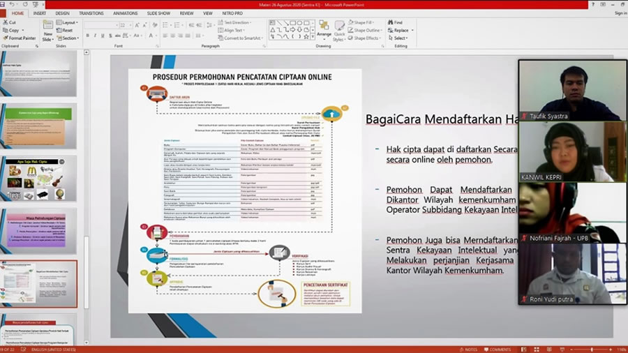 | Tim Sentra KI UPB mengikuti Bimbingan Teknis Pendaftaran Hak Cipta dari Kanwil Kemenkumham Kepri